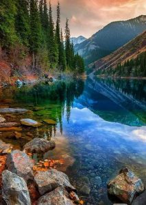 The area offers a combination of mountains, water, and forest that makes it one of Kyrgyzstan’s most photogenic natural sites.
